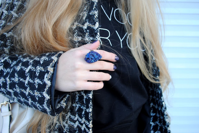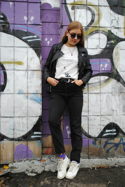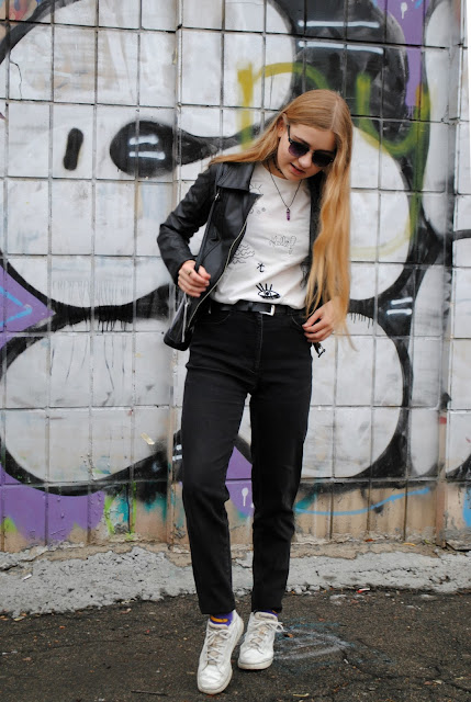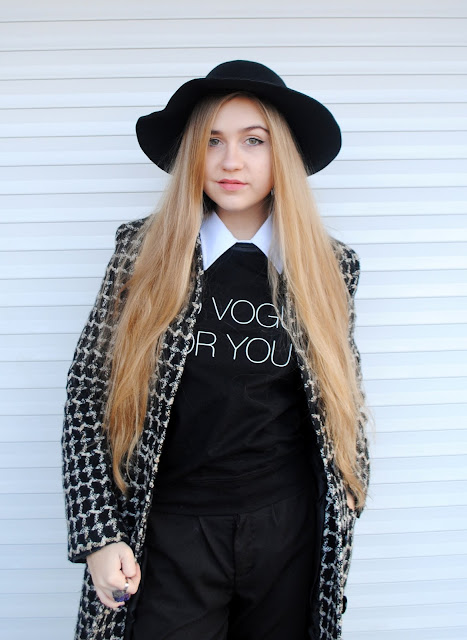 Хотелось бы еще написать о сегодняшнем образе! Я не могу нарадоваться своему свитшоту, он обалденный, очень приятный материал и невероятно крутые рисуночки по всему свитшоту, даже на спине. Я любитель черно-белых нарядов, но не любитель обычных вещей. Чаще всего играю не с цветом, а с деталями, главное проявить фантазию!)